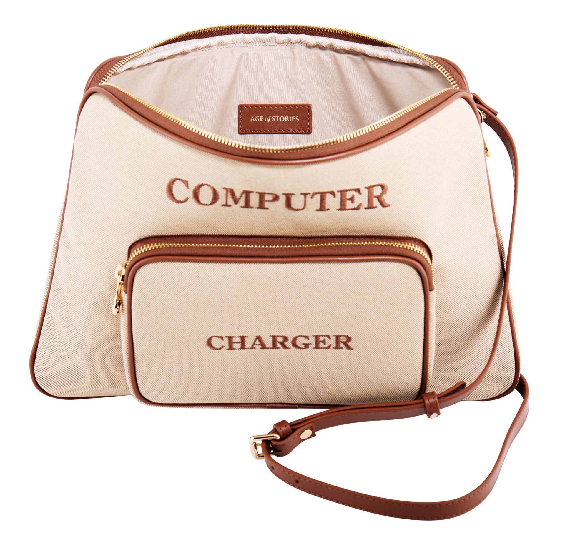 Kanvas çantanın şarj aleti ve diğer kablolar için tasarlanmış